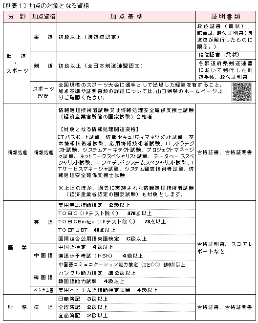 加点対象となる基準等は、下記の「スポーツ経歴加点Q&A」を確認してください。