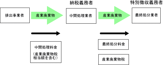 - 最終処分業者が特別徴収義務者として、納税義務者(中間処理業者及び排出事業者)から産業廃棄物税を徴収していること。