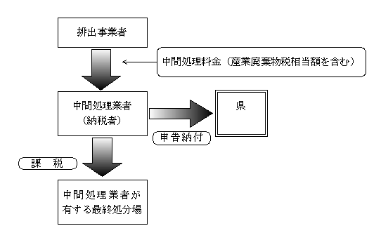 この場合は、制度的に中間処理後の産業廃棄物(中間処理産業廃棄物)が最終処分場に搬入されたところで課税となるため、納税義務者は中間処理を行った中間処理業者となります。