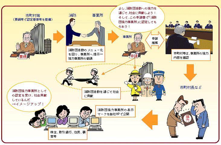 事業所の消防団活動への協力が社会貢献として広く認められると同時に、事業所の協力を通じて地域防災体制がより一層充実されることを目的とした制度です。