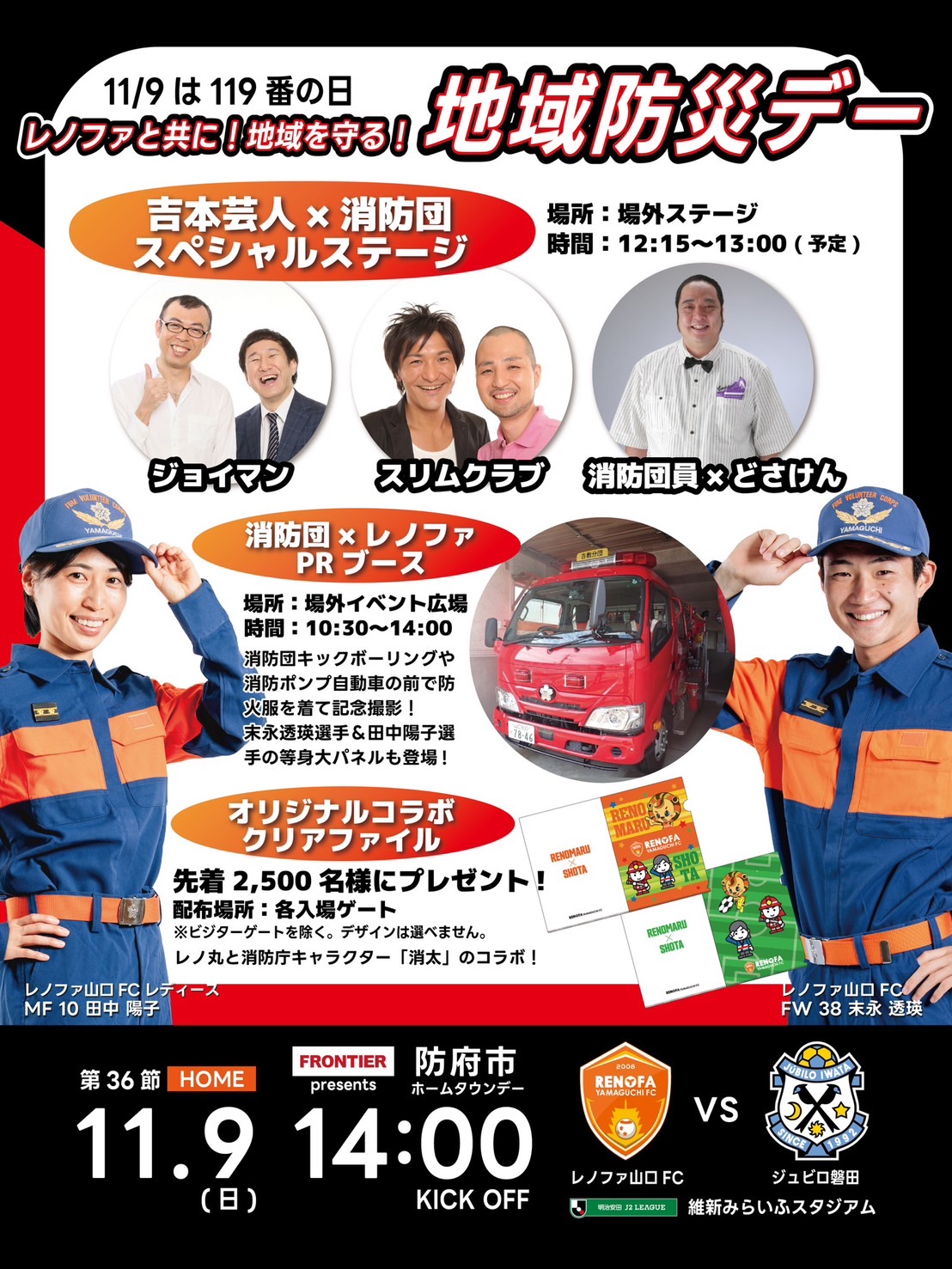 レノファ山口FC VSジュビロ磐田戦における消防団PRイベントの開催について